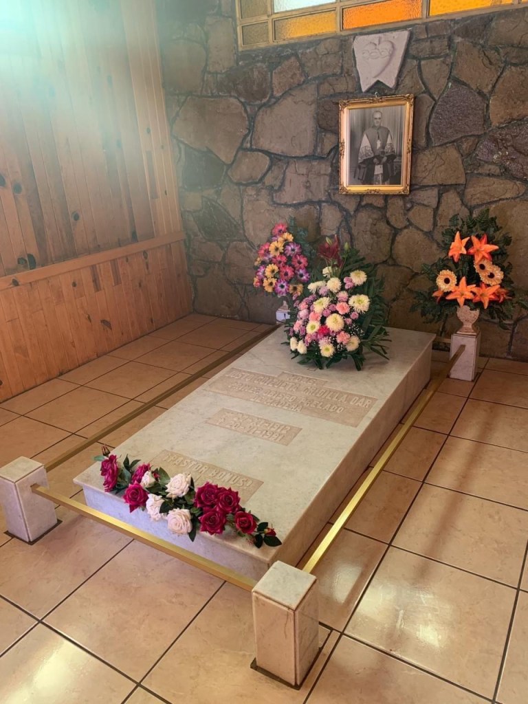 Sus restos descansan en la Catedral de San Antonio de Padua de Ciudad Cuauhtémoc, Chih.
